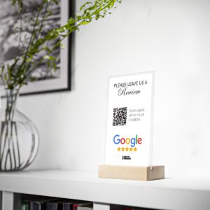 Introducing the Acrylic Google Review Stand with Wooden Base – White Background, a stylish and functional display designed to seamlessly blend into any business setting. Crafted from durable, high-quality 3mm acrylic, this stand provides a modern yet timeless look, perfect for cafes, restaurants, boutiques, or any professional space where customer feedback is valued.