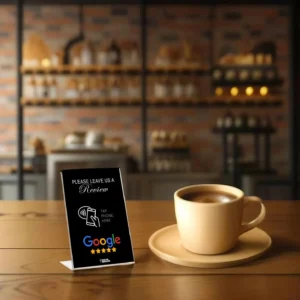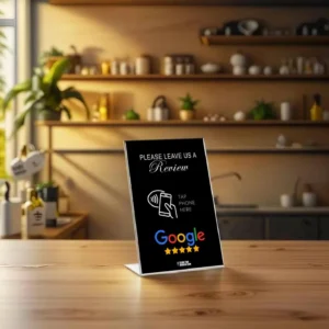 Sized at 4×6 inches, this NFC-enabled review stand is ideal for high-traffic areas like checkout counters, reception desks, and display tables. Its compact design ensures it doesn’t take up much space, while its minimalist appearance allows it to fit seamlessly with any decor. The tap-to-review feature encourages immediate feedback, giving customers a quick and easy way to leave a review without having to search for your business online.