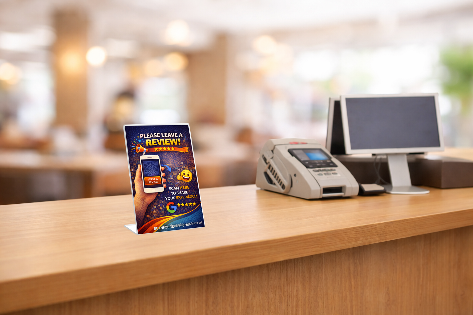 Please Rate Us – Google Review QR Code Stand – Front Desk Display