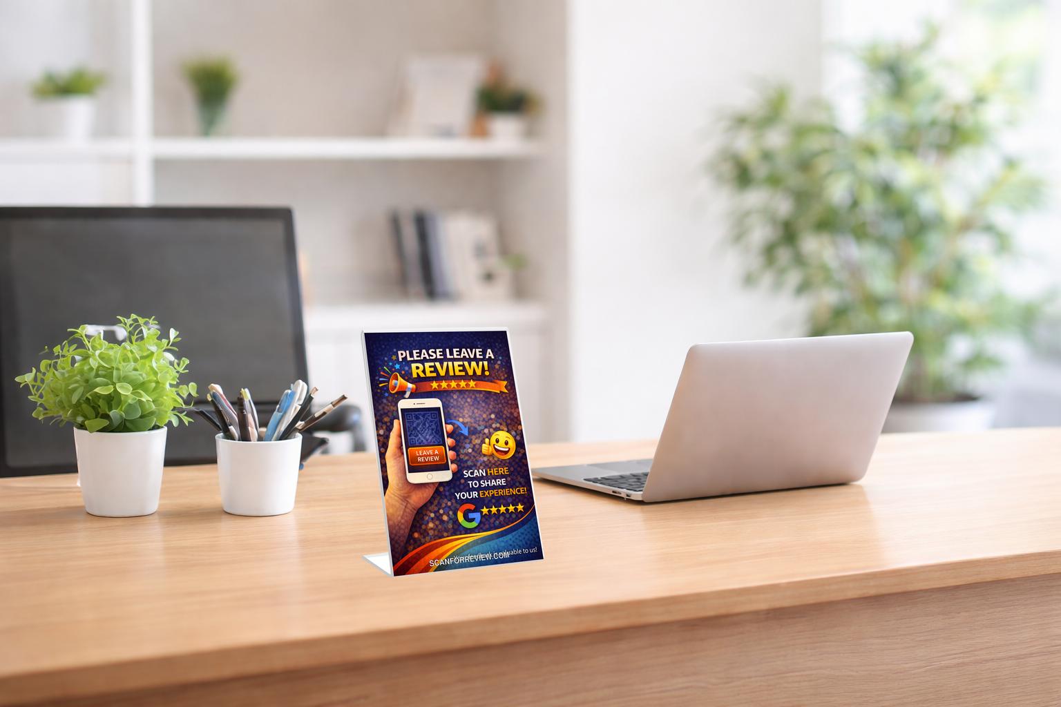Make it easy for customers to leave a Google review using this premium acrylic QR code stand.