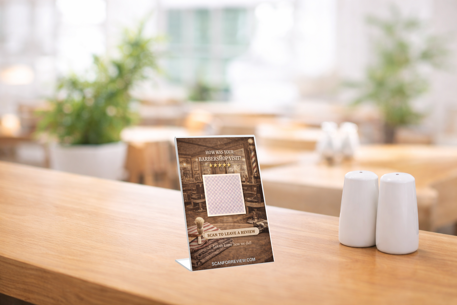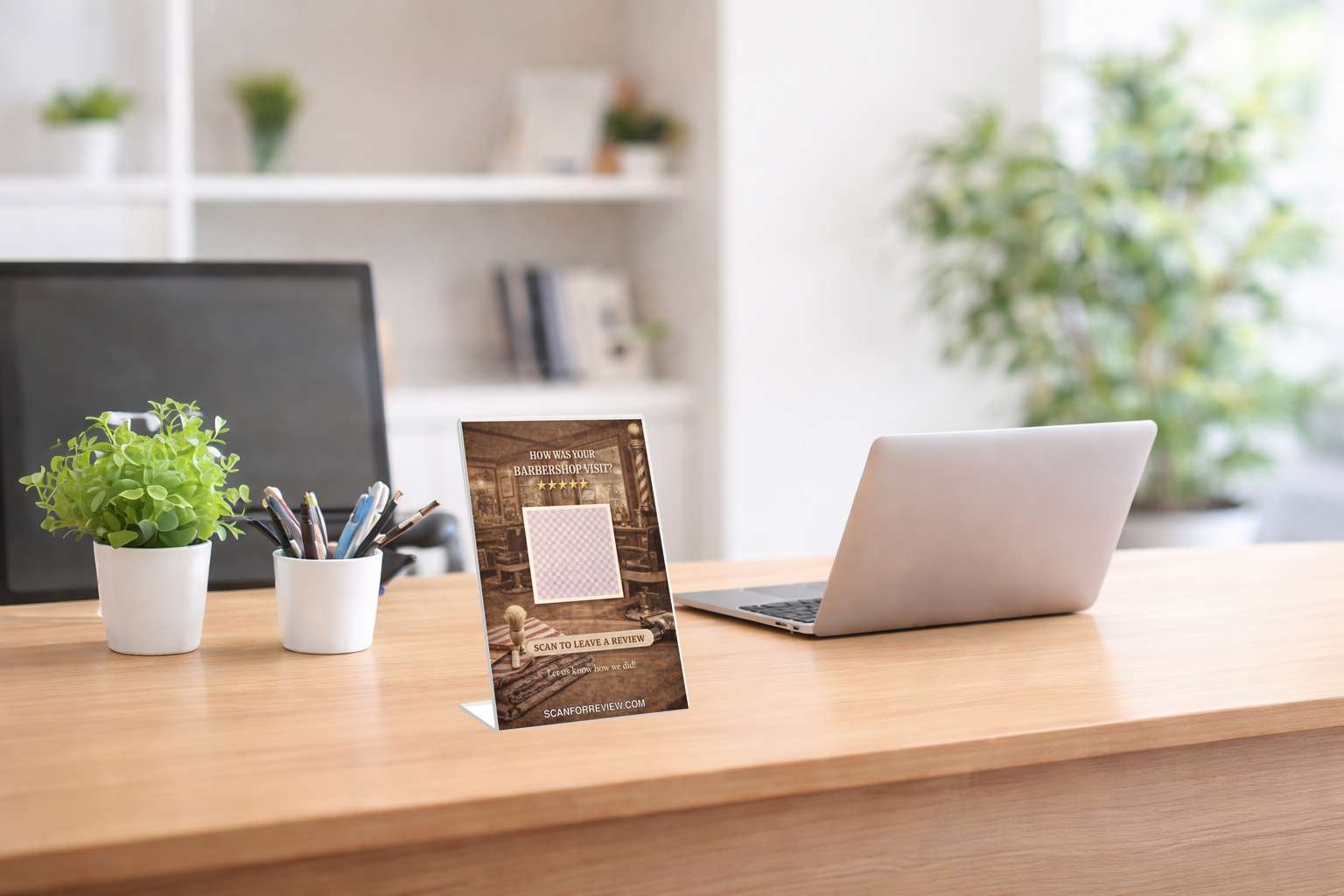 Please Rate Us – QR Code Review Stand for Barbershop – Countertop Sign