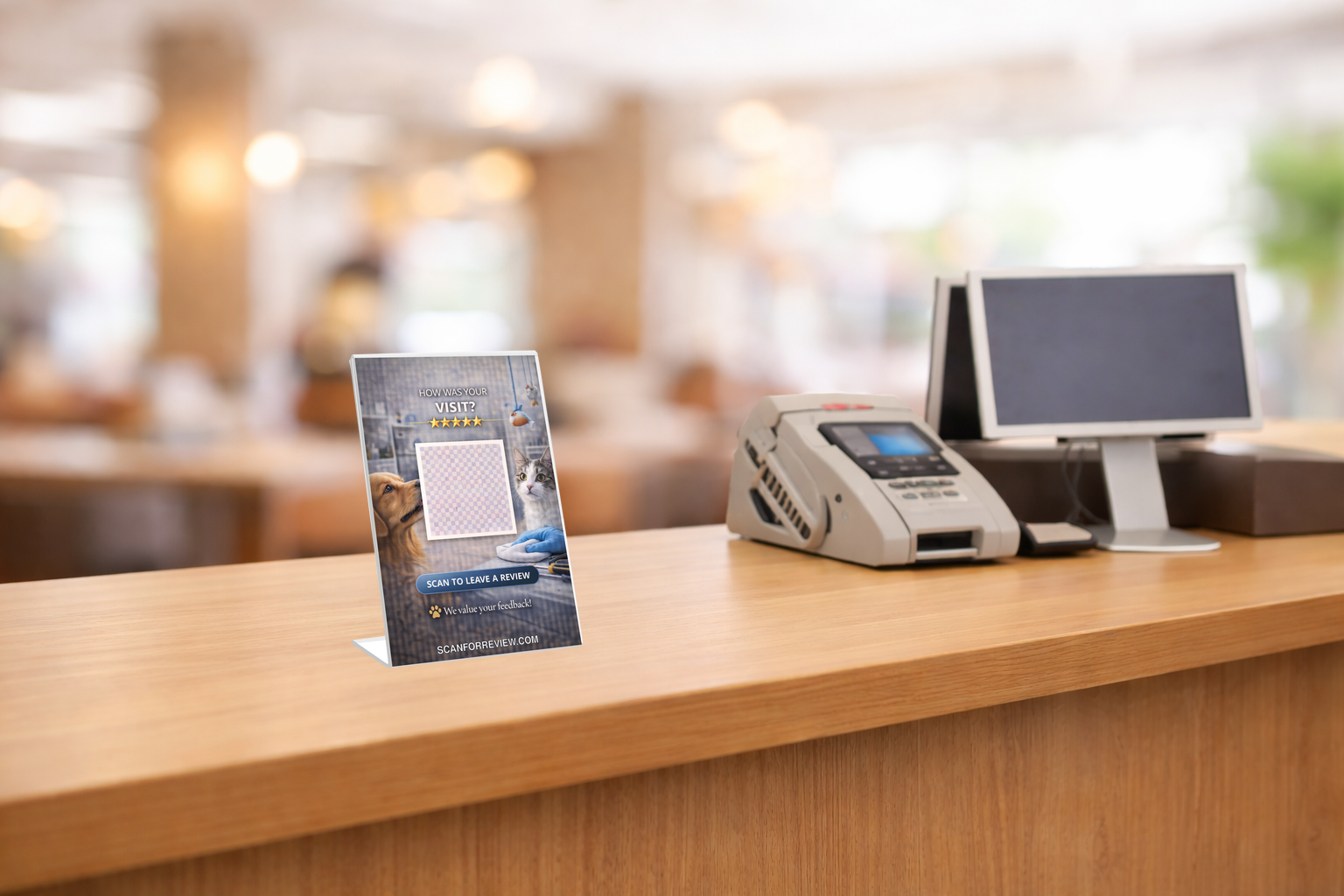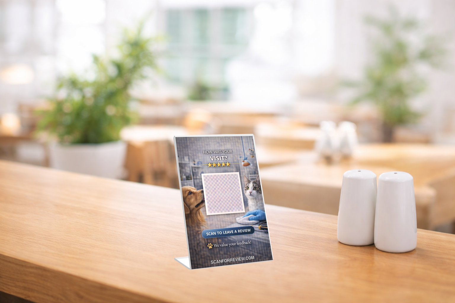 Review Us on Google – Google Review QR Code Sign for Veterinarian – Countertop Sign
