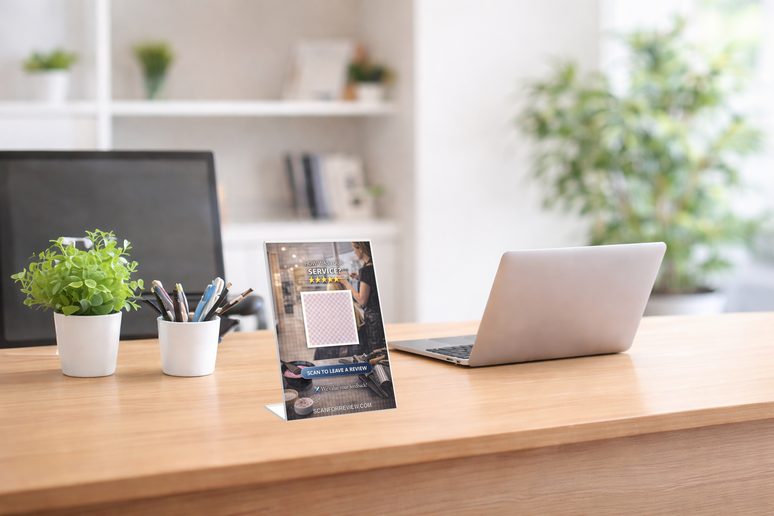 Make it easy for customers to leave a Google review using this premium acrylic QR code stand.