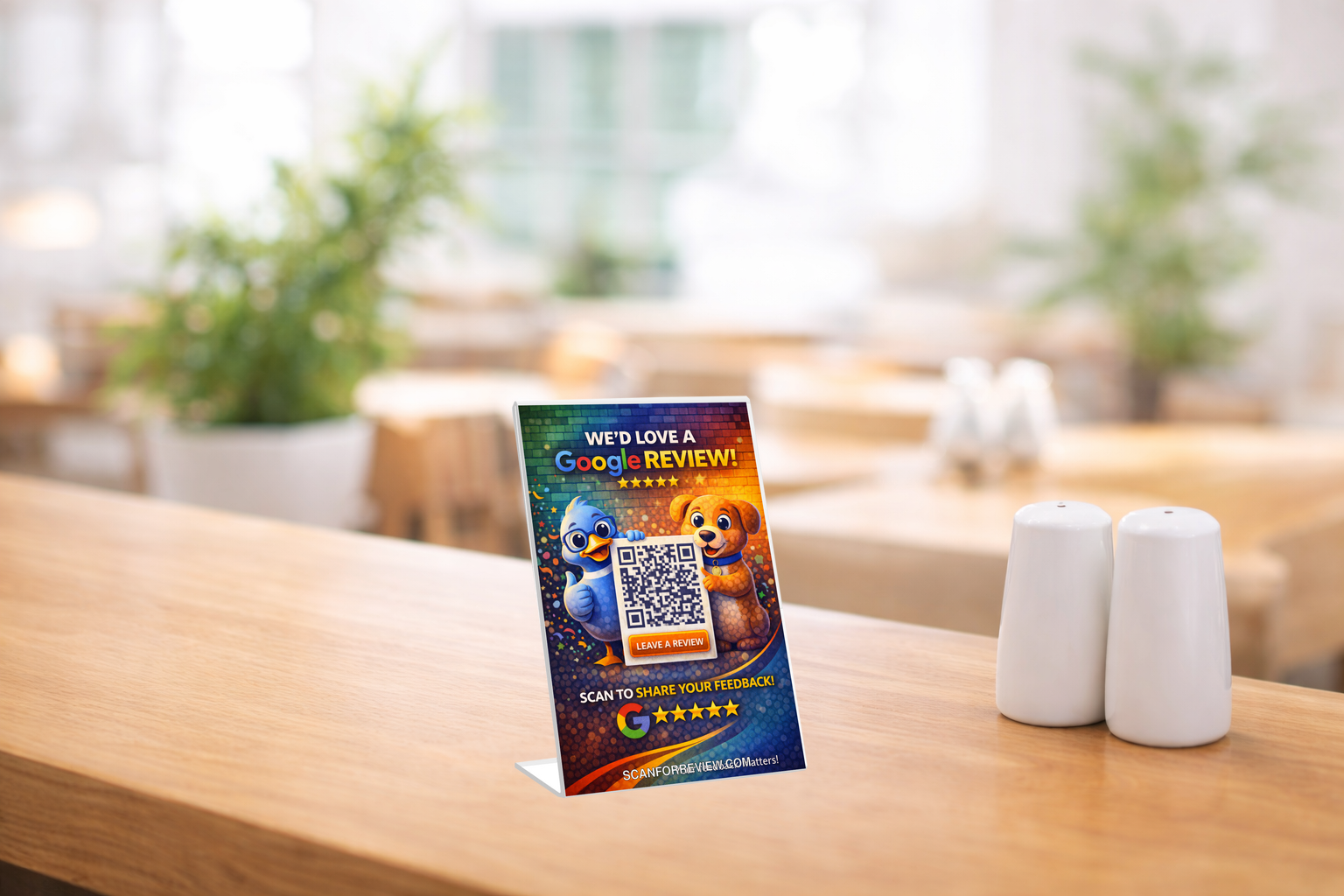 Make it easy for customers to leave a Google review using this premium acrylic QR code stand.