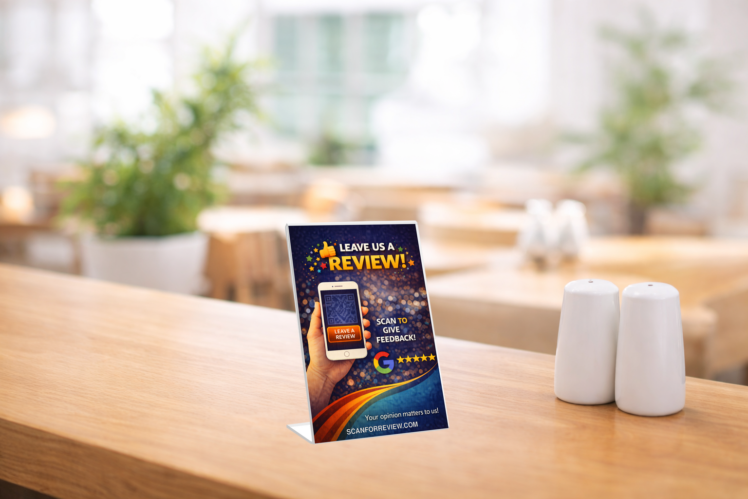 Make it easy for customers to leave a Google review using this premium acrylic QR code stand.
