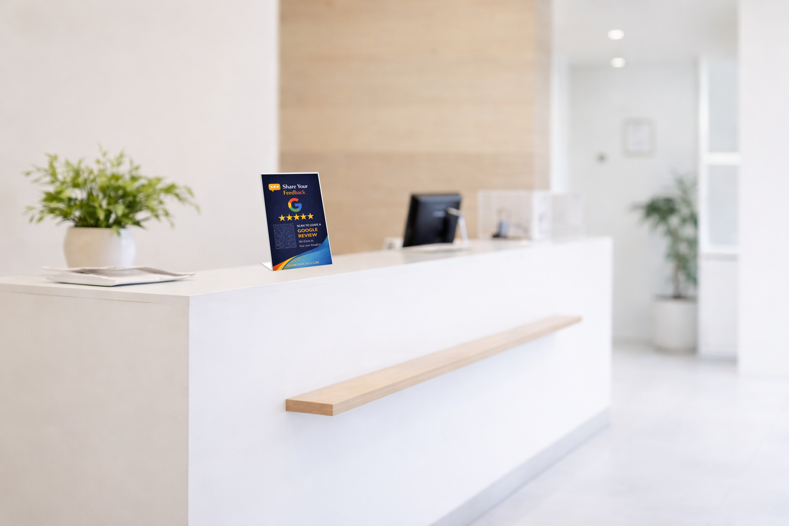 Increase your Google reviews with a simple tabletop QR code display.
