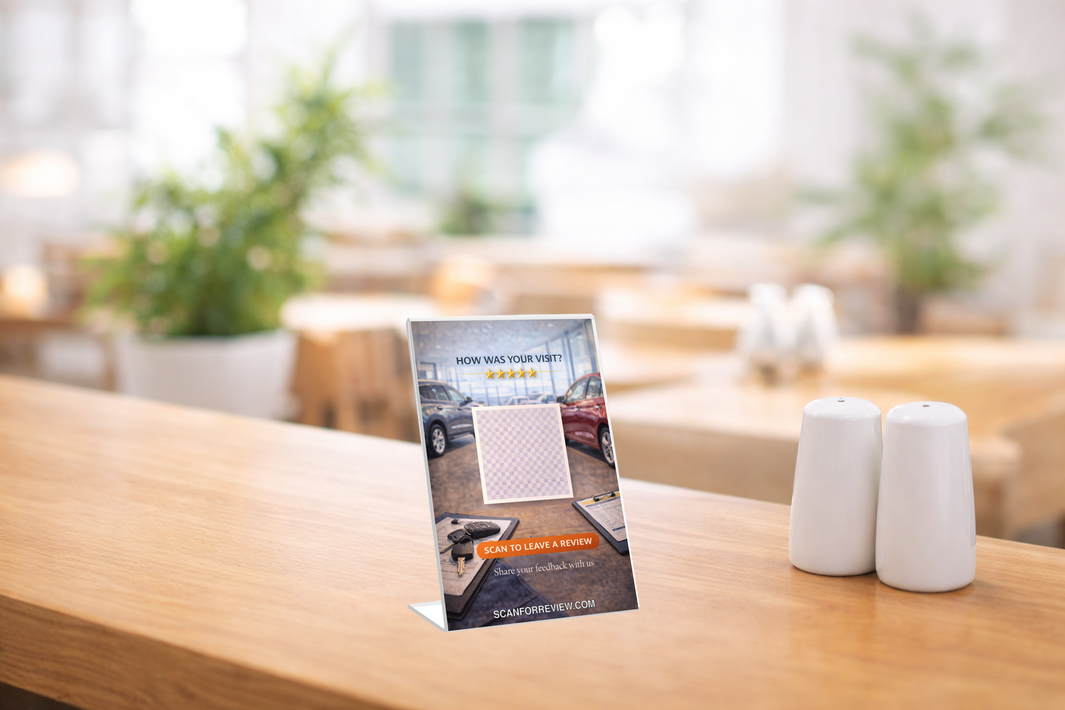 We Value Your Feedback – QR Code Review Stand for Car-Dealership – Countertop Sign